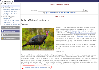 The genebuild summary will be available for six species: the Anole lizard, Marmoset, Mouse, Panda, Turkey and Zebrafish. More genebuild summaries will be available in the future when genebuilds of existing species are being updated, or when new species are being annotated. You can download the document via a link found near the bottom of the “Description” page for each species. Just click on the species of interest from the home page, to open its description page.